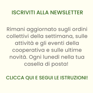 Ogni lunedì apriamo degli ordini su prenotazione che restano disponibili per una settimana, assortendo prodotti stagionali, biologici, in grandi formati.