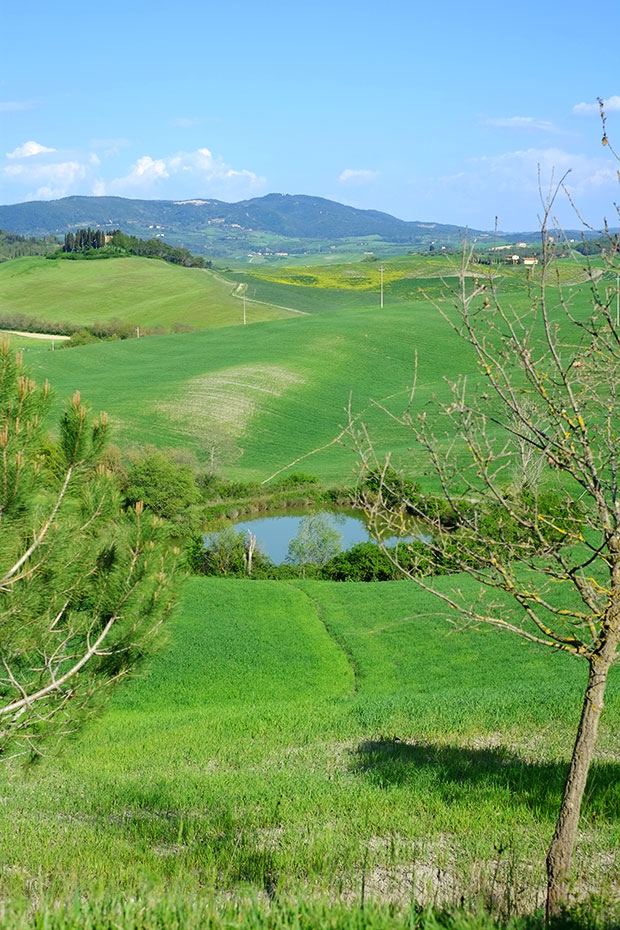 Siamo partiti nel primissimo pomeriggio alla volta di Peccioli, che si trova in Valdera, appena passato il confine della provincia di Siena, già in territorio pisano. L’impatto col paesaggio che circonda gli stabilimenti di produzione è già particolarmente forte: davvero uno dei panorami più belli che si possano trovare in queste terre, già di per sé meravigliose. Floriddia è in cima ad una collina, lo sguardo può spaziare libero ed arrivare lontano, o fermarsi sul profilo della vicina Volterra. Anche a livello estetico, l’azienda ha un evidente rispetto del paesaggio: persino un container può diventare veicolo di ulteriore bellezza.